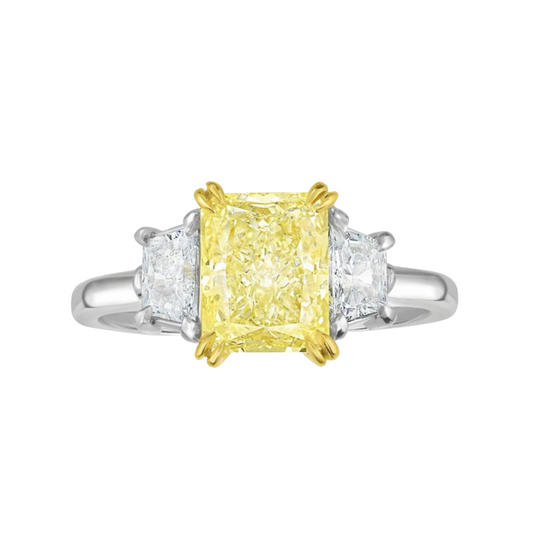 Yellow Radiant Cut Diamond Three-Stone Ring
